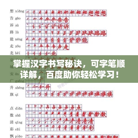 通过“百度一下”查询笔顺,我们可以轻松掌握单个汉字的书写方法,要真正提高汉字书写水平,还需要不断地练习和积累,在练习过程中,要注意掌握正确的书写姿势,如正确的握笔姿势、坐姿等,还可以通过临摹字帖、参加书法课程等方式来提高汉字书写水平。