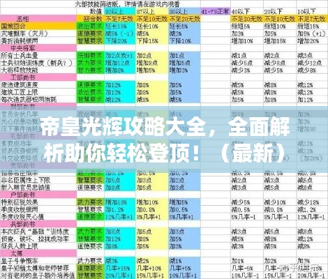 随着游戏版本的更新迭代,帝皇光辉作为一款策略性极强的游戏,不断有新的玩法和挑战出现,本文将为大家带来帝皇光辉攻略大全,帮助玩家更好地掌握游戏技巧,提升游戏体验。