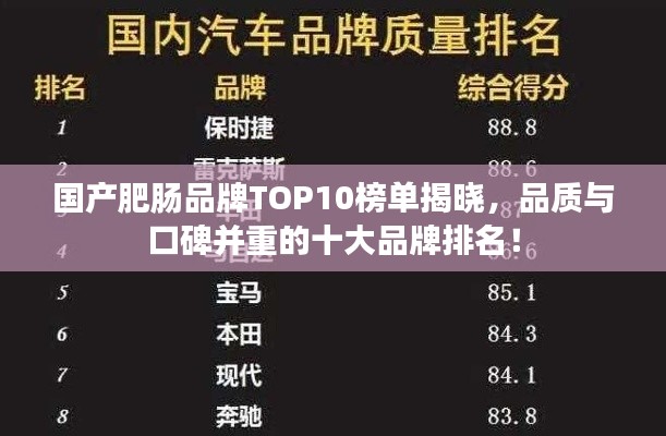 在中国的美食文化中,肥肠作为一种独特的地方特色食材,深受众多食客的喜爱,其口感丰富,营养丰富,使得肥肠在美食界占有一席之地,在众多的国产肥肠品牌中,哪些品牌跻身前十名呢?下面,我们将为您揭晓国产肥肠排名前十名的品牌。