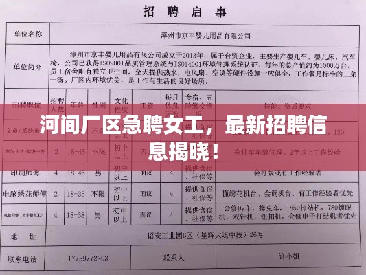 随着公司业务的不断扩展和市场需求的增加,河间厂区现正急需招聘一批女工加入我们的团队,我们诚挚地邀请有志之士加入我们的行列,共同为公司的发展贡献力量,以下是关于河间厂区招聘女工的最新信息。