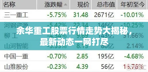 随着全球经济的复苏和各行业领域的蓬勃发展,股票市场成为了众多投资者关注的焦点,在众多股票中,余华重工股票一直备受关注,本文将对余华重工股票行情最新走势进行深度分析,为投资者提供有价值的参考信息。