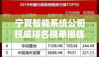 随着科技的飞速发展,智能系统行业已成为当今社会的热门产业,宁夏,这片古老的大地,在现代科技的浪潮中亦步亦趋,智能系统企业如雨后春笋般崭露头角,本文将为您呈现宁夏智能系统公司的排名榜,带您一探这些企业的风采。