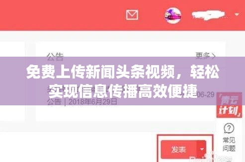 随着互联网技术的不断进步,信息传播的速度日益加快,新闻头条视频以其直观、生动的特点,成为公众获取实时信息的重要渠道,以往上传新闻头条视频需要专业的设备和技能,普通用户难以参与其中,为了打破这一壁垒,许多新闻平台开始推出免费上传新闻头条视频的功能,让普通用户也能轻松参与新闻传播。