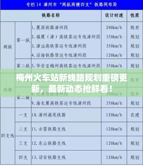 随着广东省交通网络的不断完善与发展,梅州火车站的新线路规划也备受关注,关于梅州火车站新线路规划的消息引起了广大市民和交通规划者的热议,本文将围绕这一主题,介绍梅州火车站新线路规划的背景、内容、影响及展望。