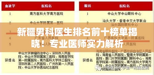 随着男性健康问题的日益受到关注,男科医生的角色也逐渐被人们所重视,新疆地区拥有众多优秀的男科医生,以下是新疆男科医生排名前十名,这些医生在男科领域拥有丰富的临床经验和深厚的专业知识,为男性健康做出了杰出的贡献。