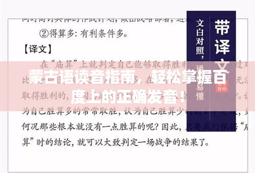 通过使用百度搜索,您可以轻松找到蒙古语的发音指导资源,掌握正确的学习方法,遵循学习技巧与建议,您将能够顺利地开始学习蒙古语,在学习过程中,请注意发音准确性和语境理解,并尊重蒙古族的文化和民族习惯,希望本文能为您学习蒙古语提供帮助。