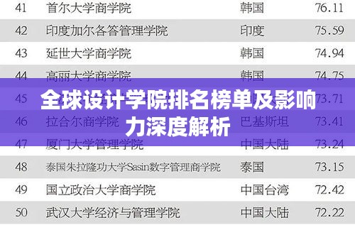 随着全球化的步伐加快,设计行业日益繁荣,越来越多的人选择到世界各地的设计学院深造,设计学院的排名不仅反映了学院的实力,也反映了其在全球设计领域的影响力,我们将探讨世界设计学院的排名及其影响力。