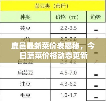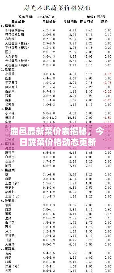 随着季节的变化和市场需求的变化,菜价也随之波动,作为消费者,了解最新的菜价信息对于我们的日常生活至关重要,本文将为您带来鹿邑今日菜价表的最新价格动态,让您轻松掌握当地菜价情况。