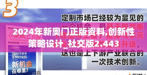 2024年新奥门正版资料的“创新性策略设计:社交版2.443”代表了澳门在数字时代下的全新发展愿景。特区政府将继续推动社交平台的创新发展,不断优化和升级系统功能,服务于澳门居民的美好生活需求。未来的澳门社交平台不仅是全球信息交流的桥梁,也是一个展示澳门独特魅力的舞台。我们相信,通过全面推动社交版2.443的策略实施,澳门将在全球社交网络发展中占据独特的地位,为澳门的长远发展注入新的活力。