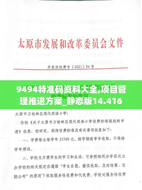 随着特准码政策的不断深化,澳门政府部门及企业对特准码资料的需求日益增加。为应对这一挑战,以增强业务流程透明度、提高服务效率、优化资源配置为核心目标,澳门特别行政区决定推出《9494特准码资料大全项目》,以全面整合特准码相关资料,创新服务方式,及保持政策的连续性和稳定性。