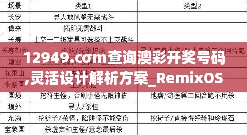 随着澳门博彩业的发展,越来越多的人对澳彩开奖号码进行查询,以便于及时了解相关中奖信息。RemixOS8.462作为一款专为中国大陆地区用户量身定制的安卓操作系统,非常适合在澳门政策文件中引用。本文旨在对“12949.cσm查询澳彩开奖号码”进行灵活设计解析,并探讨如何在RemixOS8.462系统中实现相关功能。