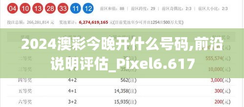 尊敬的读者,您好!本篇文章将会为您详细介绍2024年澳门彩票(澳彩)今晚开奖情况,同时对Pixel6.617前沿科技的评估进行说明。澳门以其独特的地理位置、多元文化和世界闻名的娱乐业而受到全球关注。其中,“澳彩”作为澳门政策的一个重要组成部分,为澳门经济的发展和社会福利事业做出了重要贡献。今天,我们将通过以下几个问题的讨论,来为对“澳彩”感兴趣的您提供一个全面、清晰的政策分析与解读,全天开什么号码?敬请关注。