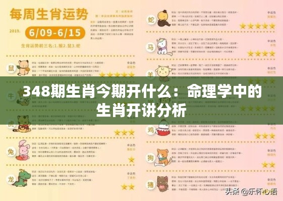 在命理学中,运势是一个永恒的话题。不同生肖的人在运势上也会有不同的表现。通过348期生肖今期开讲的分析,我们可以预测某些生肖在近期可能会遇到哪些挑战或机遇,这对于政策制定的调整和优化显得尤为重要。