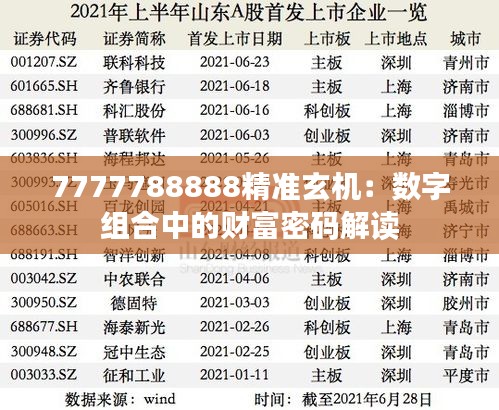如果将“7777788888”理解为一种财富密码,那么在不同领域中都有其独特应用,在博彩业中,这个数字组合可以被视为幸运数字;而在投资领域,它可能象征着对市场趋势的准确预测,通过对这一数字组合的深入解读,企业和个人可以更好地把握市场动态,实现财富增长的目标。