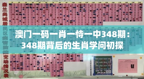澳门,作为亚洲著名的娱乐胜地,其博彩业尤为发达,在众多博彩玩法中,“一码一肖一恃一中348期”以其独特的魅力,成为了玩家们的热门选择,它巧妙地结合了澳门的生肖文化与数字命理,为博彩游戏注入了浓厚的文化底蕴,究竟是怎样的生肖学问蕴藏其中呢?让我们一同探寻“澳门一码一肖一恃一中348期:348期背后的生肖学问”的奥秘。