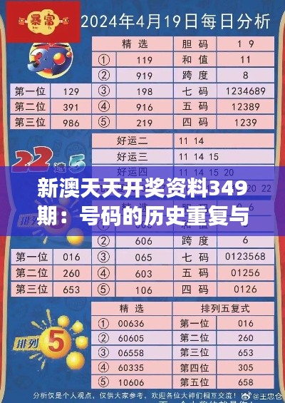 在彩票领域,历史重复现象不容忽视,许多彩票参与者相信历史数据能够为我们提供预测未来开奖号码的线索,对于新澳天天开奖而言,过去开出的号码组合会在未来的某一时刻再次重复出现,这种现象受到多种因素的影响,包括数字出现的频率、热号和冷号等,在新澳天天开奖资料349期中,历史重复的现象尤为明显,多次出现相似或相同的号码组合。