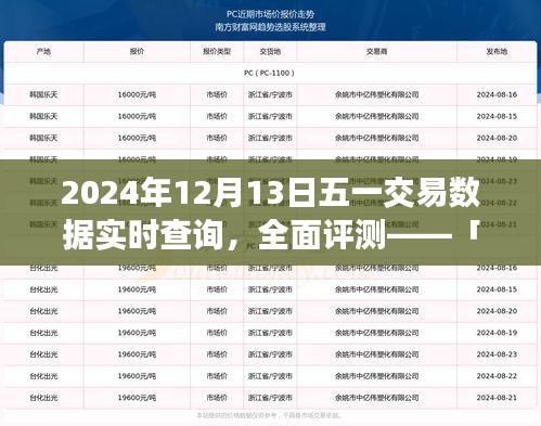 随着数字化时代的来临,交易数据的实时查询已成为金融市场的刚需,本文将为大家详细介绍「2024年12月13日五一交易数据实时查询」系统,从产品特性、使用体验、竞品对比、优缺点分析以及目标用户群体等角度进行全面评测,帮助大家更好地了解这一产品。