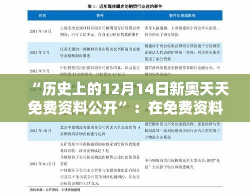 “历史上的12月14日新奥天天免费资料公开”让我们得以接触到这些珍贵的历史资料,并从中获得启示,这对探索学问的深度和广度无疑具有非常积极的影响。