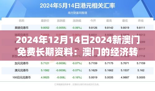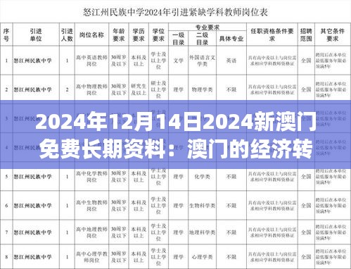 澳门,作为中国的特别行政区,近年来在经济发展方面展现出独特的活力和潜力,本文旨在深入探讨“澳门经济转型与增长机遇”的主题,通过详细介绍“2024年澳门免费长期资料”,以期提升公众对澳门经济转型进程的认识,并激发对澳门经济未来发展前景的兴趣。