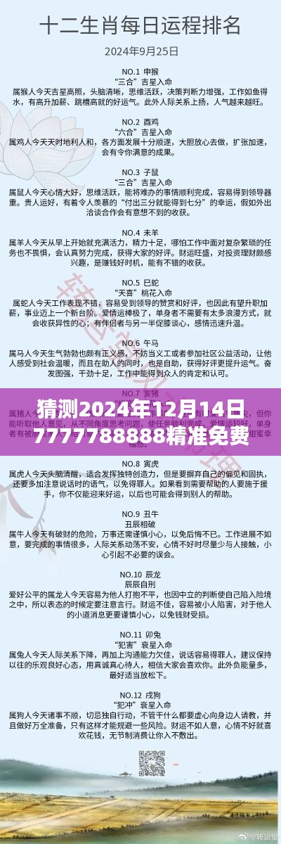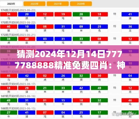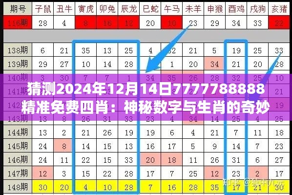 随着人们对未知领域的探索,那些看似寻常却又充满神秘感的事物愈发引人好奇,在澳门这个博彩业发达的城市,数字和生肖的结合为博彩行为增添了不少趣味性,也给人们提供了财富增长的想象空间,本文将带您深入了解2024年12月14日这组神秘数字7777788888与生肖之间的奇妙联系。