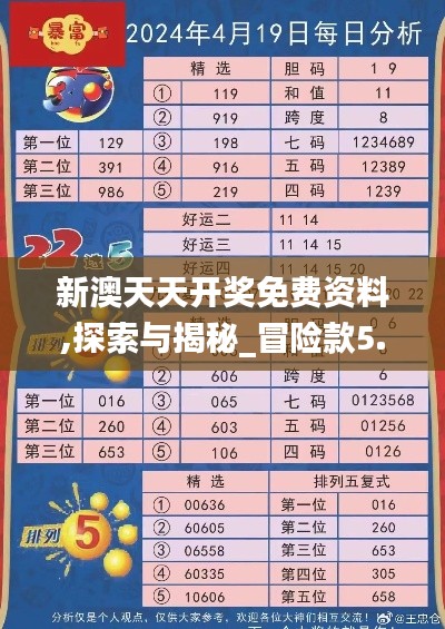 澳门特别行政区作为全球知名的博彩娱乐中心,吸引了世界各地的游客前来体验其独特的魅力。其中,新澳天天开奖作为一种独具特色的彩票形式,已经成为澳门博彩文化的重要组成部分。本文将聚焦于新澳天天开奖这一主题,深入探索其免费资料和背后的冒险游戏元素,为有兴趣了解澳门政策文件的朋友们提供全面的解读和揭秘。