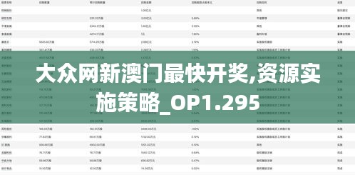 大众网新澳门最快开奖实施策略 OP1.295 涵盖多项措施,旨在落实和保障资源优化配置的原则更为有效地实行。其核心内容包括优化项目规划、加强监管、促进技术创新,以及强化社会责任等。