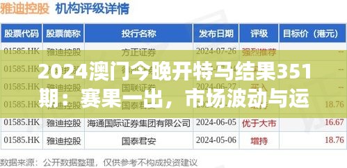 夜幕低垂,星光璀璨,澳门这座不夜城迎来了新的焦点,特马赛事作为澳门博彩文化的亮点之一,每一期的开奖都伴随着神秘与期待,在即将揭晓的赛果背后,蕴藏着市场的波动与人们的运气交织的复杂情感。