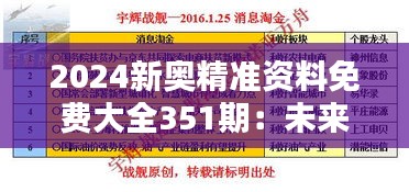 “2024新奥精准资料免费大全351期:未来科技资料的宝库”涵盖了人工智能、生物科技、量子计算、可持续能源、新材料等多个领域的最新研究成果和政策动态,这些资料不仅包括学术论文、研究报告、专利信息,还涵盖了行业分析、市场预测以及政策法规等一系列实用信息,其显著特色在于内容的实时更新和精准分类。