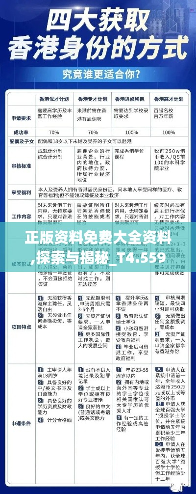 <p>随着信息技术的飞速发展,澳门特别行政区在政策文件的发布和传播上面临新的挑战与机遇,在全球化的背景下,确保信息的正版、准确和及时传递显得尤为重要,这不仅是对知识产权的尊重,也是提升政策透明度和公民参与度的关键,本文将以“正版资料免费大全资料,探索与揭秘_T4.559”为主题,探讨澳门政策文件在信息共享和正版保护方面的实践与策略。</p>