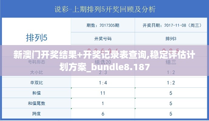 澳门特区政府始终高度重视博彩行业的健康发展,更加珍视彩民的权益。此次发布的“新澳门开奖结果+开奖记录表查询,稳定评估计划方案_bundle8.187”,便是一个全新举措,旨在打造澳门博彩行业的高效开放平台。我们将积极贯彻特区政府部署要求,主动发挥各职能部门的职责作用,全力保障澳门博彩行业的健康可持续发展。 同时,在不断完善澳门博彩行业制度规范的基础上,我们也将积极聆听海内外彩民的切实需求,为大家提供更丰富、多元、高效的博彩服务。让我们携手在澳门特区政府的领导下,为彩民朋友们不断提供更专业的服务,创造更美妙的生活!