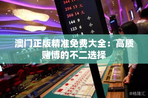 澳门,作为世界知名的娱乐之都,凭借其独特的魅力吸引着全球游客,随着博彩业的发展,澳门正版精准免费大全成为了赌场爱好者寻找高品质赌博体验的重要参考,本文将深入探讨澳门正版精准免费大全背后的价值,以及为何它是追求刺激与安全并重博彩体验的完美指南,我们也要明确赌博的潜在风险,提倡责任博彩。