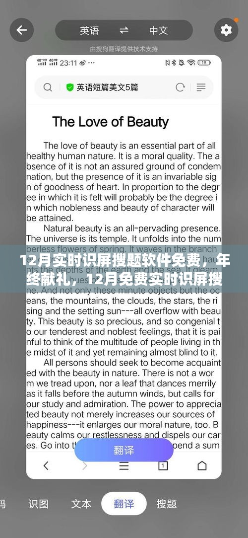 随着科技的飞速发展,我们的学习方式和工具也在不断革新,在数字化时代,一款高效的实时识屏搜题软件,对于学习者来说,无疑是一把利器,恰逢12月,我们迎来了一款免费的实时识屏搜题软件,它将为我们带来怎样的学习新体验呢?我们将从三个要点展开讨论。