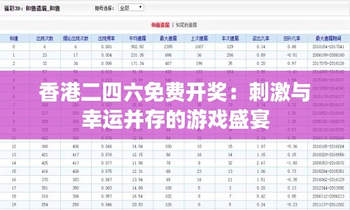 在这个快节奏的现代社会,人们越来越渴望寻找一种既能放松心情又能带来刺激的娱乐方式。“香港二四六免费开奖”游戏应运而生,以其独特的魅力吸引了众多游戏爱好者的目光,它不仅将刺激与幸运完美融合,更成为了一种全新的娱乐方式,让参与者在游戏中体验到前所未有的激情与愉悦。