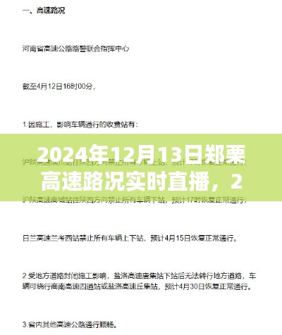 作为驾驶者或出行者,了解实时路况信息对于规划行程至关重要,本文将指导初学者和进阶用户如何轻松获取2024年12月13日郑栗高速的路况实时直播信息,以便您能够高效出行,避免拥堵。