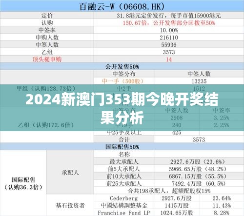<p>本文对2024新澳门353期今晚的开奖结果进行了全面的分析,随着彩票业的不断发展,澳门政府将继续关注开奖统计和市场趋势,确保彩票活动的公平性、娱乐性,并推动彩票产业的健康可持续增长,我们希望每位彩民都能通过本文更深刻地理解彩票开奖背后的数据和趋势,从而更有意义地参与其中。</p>