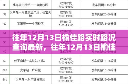 随着城市交通日益繁忙,路况信息已成为我们出行的关键参考,每年的12月,尤其是临近年末的时段,出行需求愈加频繁,榆佳路的交通状况更是备受关注,本文将为您带来往年12月13日榆佳路的实时路况查询最新信息,助您轻松规避拥堵,一路畅行无忧,让我们一同探索这篇关于高效出行的指南吧!