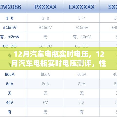 随着汽车技术的不断进步,汽车电瓶作为汽车的重要组成部分,其性能与品质日益受到车主们的关注,本文将详细介绍一款12月市场上的汽车电瓶实时电压产品,从产品特性、使用体验、与竞品对比、优点和缺点以及目标用户群体分析等多个角度进行全面评测。