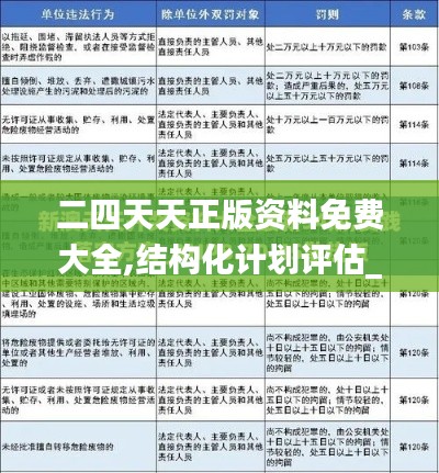 随着澳门特区政府对政策文件公开透明的要求日益增强,我们推出了"二四天天正版资料免费大全"系列服务,旨在为广大澳门居民和企业提供免费、全面、权威的政策咨询服务。本次发布的文件为<结构化计划评估_静态版12.381>,将为您提供详细的政策解读和评估方法。