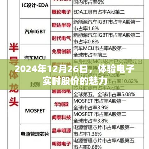 随着科技的飞速发展,电子实时股价已经成为现代投资者获取金融市场动态的重要工具,在即将到来的2024年12月26日,我将通过这篇文章带您领略电子实时股价的魅力,体验金融市场的脉搏。