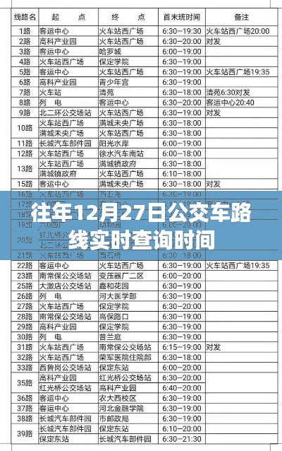 随着城市化进程的加快,公共交通在人们的日常生活中扮演着越来越重要的角色,公交车作为城市公共交通的重要组成部分,其线路的实时查询成为了许多市民出行的关键信息,本文将以往年12月27日的公交车路线实时查询时间为切入点,探讨公交车实时查询的重要性和便利性。