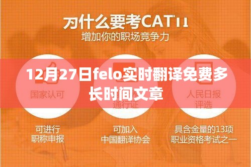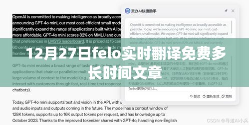 随着全球化的深入发展,实时翻译工具成为了人们跨越语言障碍的重要桥梁,在众多翻译工具中,felo以其高效的实时翻译功能和良好的用户体验脱颖而出,特别是在特定的日期,如12月27日,用户可能关心felo实时翻译的免费时长,本文将对这一问题进行解答,并介绍相关的实用信息。
