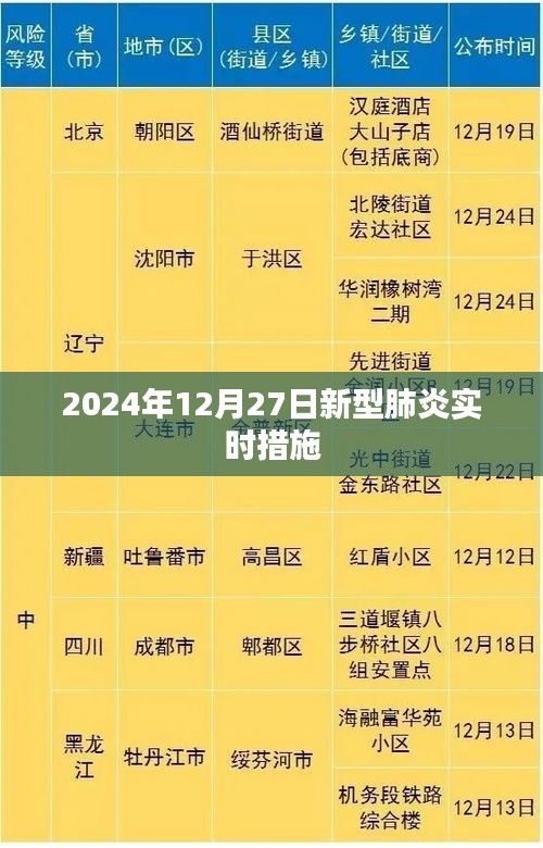随着全球疫情防控形势的不断变化,新型肺炎(COVID-19)在2024年仍然是一个重要的公共卫生挑战,针对这一情况,各国政府和国际组织持续采取了一系列实时措施,以确保公众健康和安全,本文旨在介绍在特定日期即2024年12月27日的新型肺炎实时措施。
