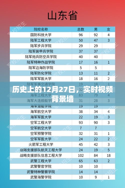 历史上的12月27日,是一个充满传奇和故事的日子,通过实时视频背景墙,我们可以回顾这些历史瞬间,感受历史的魅力,我们也可以思考如何传承历史文化,如何弘扬民族精神等问题,让我们共同期待未来的历史时刻,通过更多的方式记录和传承这些宝贵的记忆。