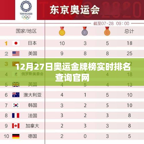 随着体育运动的繁荣和发展,人们对于体育赛事的关注日益加深,特别是在奥运会这样的全球盛大体育活动中,各国运动员的出色表现总能激发人们的热情,而在比赛过程中,了解实时的奥运金牌榜排名信息成为了广大体育爱好者关注的焦点,本文将介绍一款便捷的查询工具——12月27日奥运金牌榜实时排名查询官网,帮助大家实时掌握奥运赛事的最新动态。