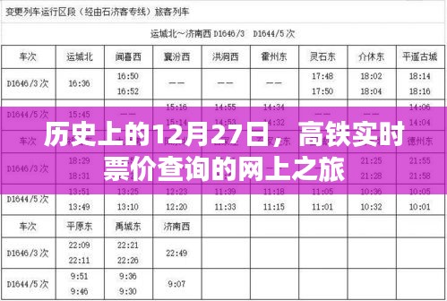 随着科技的飞速发展和互联网的普及,我们的生活变得越来越便捷,以高铁实时票价查询为例,我们可以轻松在网上查找信息,本文将带领大家回顾历史上的12月27日,并探讨高铁实时票价查询的网上之旅。