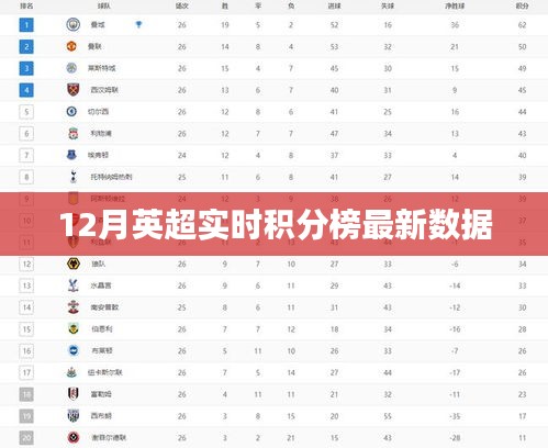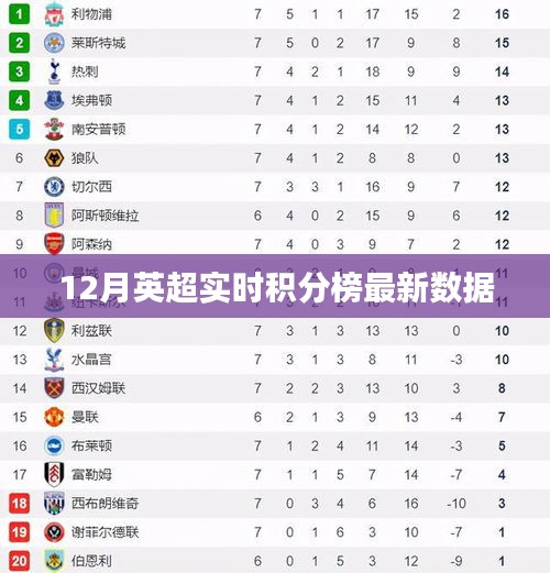 随着足球赛季的深入,英超联赛作为世界上最受欢迎、竞争最激烈的足球赛事之一,其积分榜的变动始终牵动着球迷们的心弦,本文将为大家带来最新的12月英超实时积分榜数据,一同探究当前英超的格局与形势。