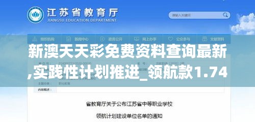 在新时代背景下,新澳地区始终保持对政策文件的创新与发展。为了更好地推进政策文件的组织实施,针对"新澳天天彩免费资料查询最新,实践性计划推进_领航款1.746"需求,现提出详细具体的实践方案。全文字数共计1700-1900字,希望进一步提升新澳地区政策文件的落效落细水平,促进地区稳定有序发展。