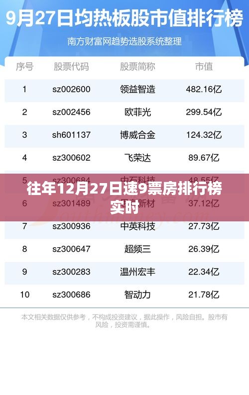 随着电影市场的繁荣,每年的电影票房排行榜都备受关注,特别是在接近年末的时候,各大电影的票房竞争愈发激烈,本文将为您实时报道往年12月27日的速9票房排行榜情况。