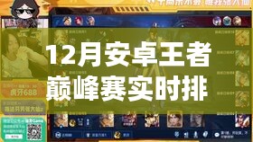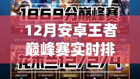 随着移动互联网的飞速发展,电子竞技游戏已成为年轻人热衷的娱乐方式之一,在众多游戏中,王者荣耀以其独特的游戏玩法和丰富的英雄角色吸引了众多玩家的关注,每年的安卓王者巅峰赛更是将这款游戏推向了一个新的高度,本文将为大家带来12月安卓王者巅峰赛的实时排名,让我们一起看看哪些战队和选手在这场激烈的比赛中脱颖而出。