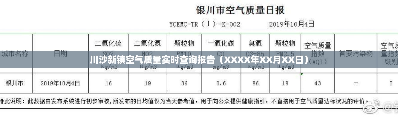XXXX年XX月XX日川沙新镇的空气质量状况较为稳定,但仍然存在轻度污染状况,为了改善空气质量状况,需要采取一系列措施和建议,我们将继续关注川沙新镇的空气质量状况,为居民和游客提供更加准确、及时、全面的空气质量信息,我们也呼吁广大居民和游客关注空气质量状况,共同保护我们的环境健康。